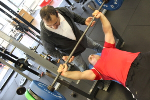 Tim Wafler mit Gregor Högler im Premium-Trainingsraum von Leistungssport Austria, in dem dank